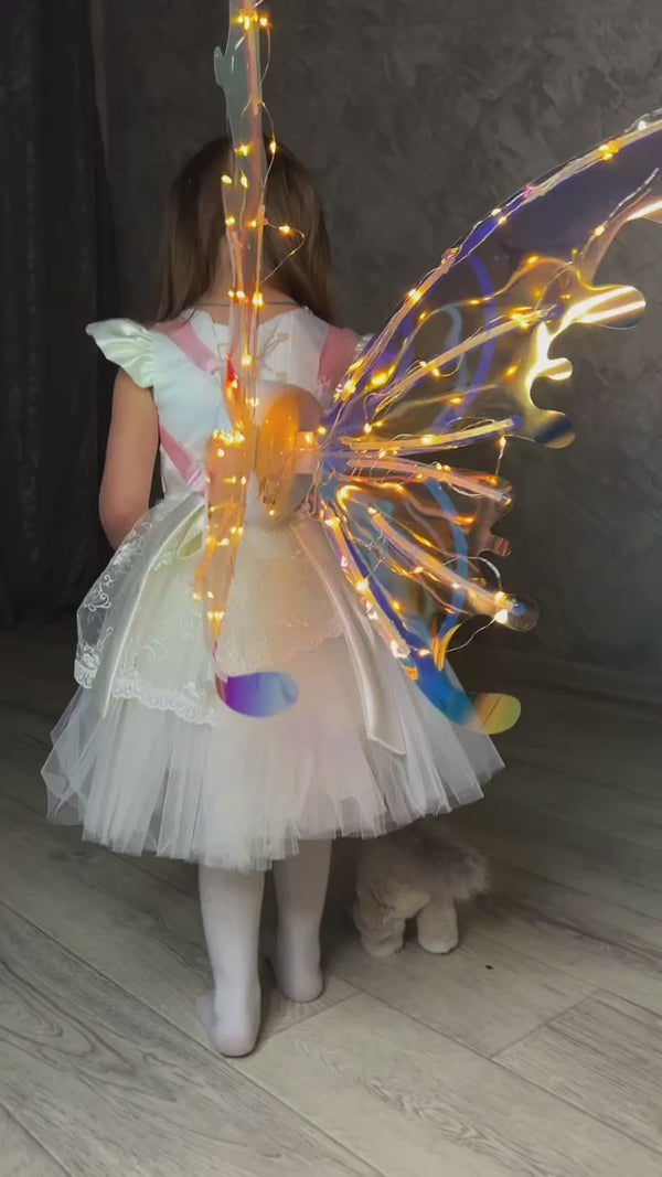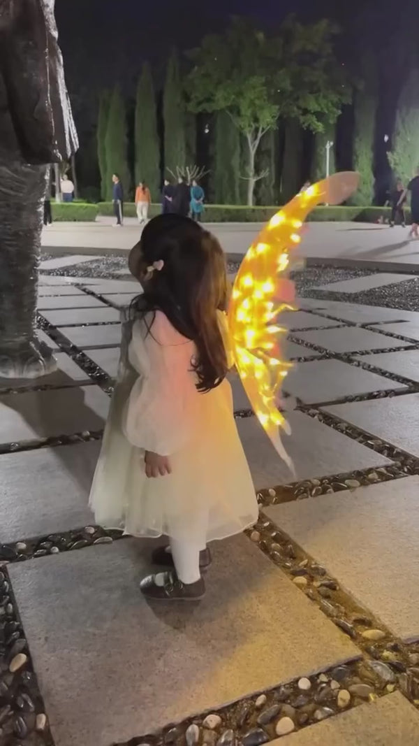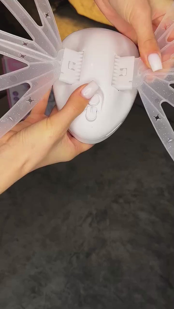 Gently unfold the wings and slip the straps over the child’s shoulders like a backpack.